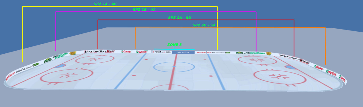 Format à 3 partenaires 2 minutes planifiées dans une période 1 rotation de 30 secondes dans le format à 5 partenaires 2 rotations de 30 secondes dans le format à 3 partenaires 1 rotation de 30 secondes dans la zone centrale