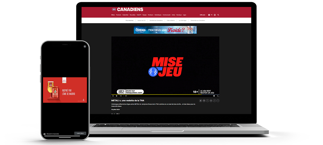 | Vidéo | 15 sec | .mov, MP4 | 30 MB | 16:9 | Support des deux - Les tags de tierce partie doivent être sécurisés | Oui | 1280x720 | 59.94fps | 16 bit (mono ou stéréo) | Apple Pro Res 422(HQ), XDCAM HD422, DVCPro HD (DV100), NTSC DV/DV50, H.264 (H.264 devrait avoir un bitrate minimum de 8mbits/s) | FTP/Tag |